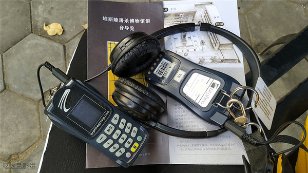 语音导览有分多种语言,我们就拿了两个中文的,就是一个头戴式耳机和一个像诺基亚手机的 语音导览器,挂绳挂脖子上,插上耳塞,按导览上的数字按钮,配合着的中文导览手册,就可以静静地听语音导航了。