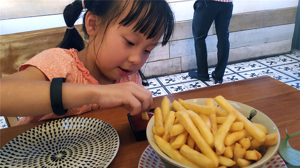这里环境还不错,这个时间没有其他的客人,找好的位置要了菜单研究,又点了我们喜欢的炒饭,点了个茄子煲,小朋友喜欢的薯条,还点了冰淇淋。