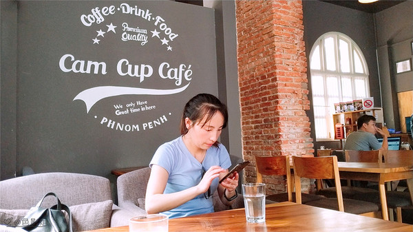 这是金边旅行的第6天,没有安排景点参观,计划是吃个饭,然后去机场。在民宿附近溜达,找到了这间餐厅。高棉语是看不懂的,看到CAFE就进去,一般都是可以点上炒饭的。