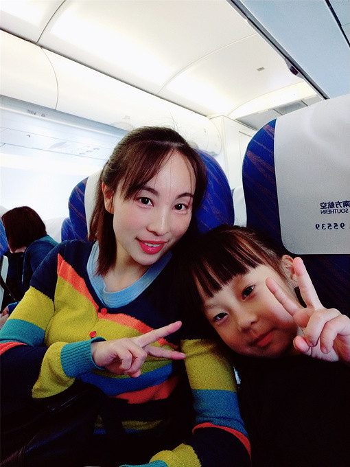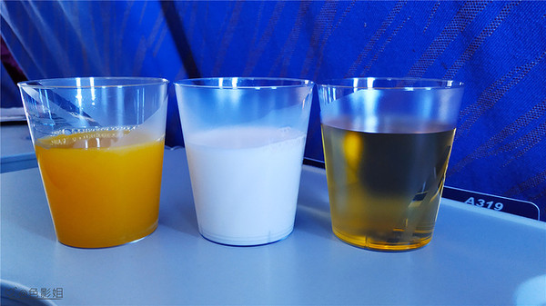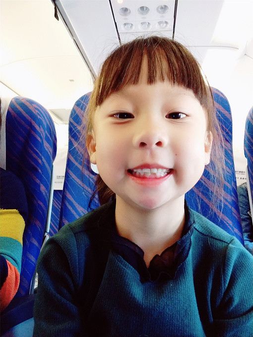 空姐问喝什么,我喝苹果汁,妹妹喝橙汁,熙熙小朋友要喝牛奶,各得所爱。