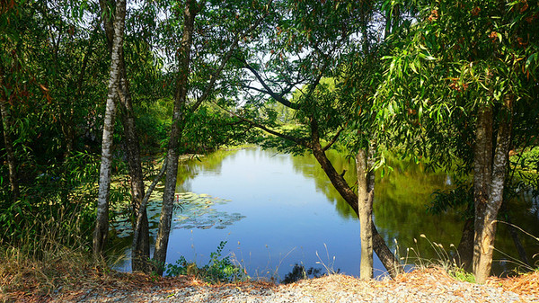 杀人场里没什么可看的,主要是听语音,大家都是戴着耳机默默的听,站在树下,走在水塘旁边的林子里,坐在树荫下的凳子上,大家来自全球各地,分15种语言的语音导览,讲述这段悲惨的历史。