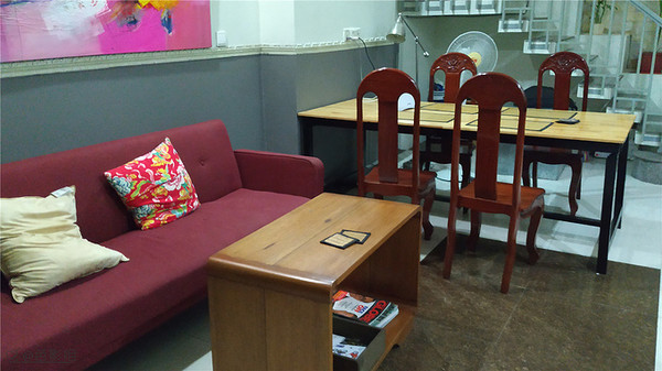 其实民宿外面的标识也不是很醒目,让我自己找确实还不好找,房东安排的司机我就不用操心了。到了民宿,这是一栋5层的民房,步梯,每层有两间房,我们的房间在3楼,就和我在预订页面上的图片一样,空间还算宽敞,一张舒服的床,有个大的阳台,光线很好,我就是看上了他们家的阳台才定的,房间里的家具没有一件多余的,一张床,一个写字台,一个置物架,除了空调还有一个风扇,挺好。
