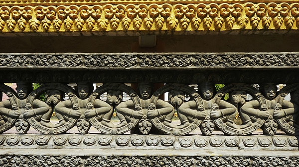 围墙上边精美的雕塑。