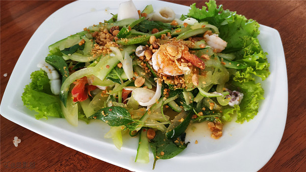 我们坐下之后, 服务员赶紧把桌子收拾出来,端上了 三杯冰块加吸管,还有赠送的冰块镇蔬菜,我们看着菜单点菜,菜单英文,价钱用瑞尔标的,单价大都在20000左右,很抵,看有一个烤鳐鱼,点了被告知没了,有点可惜啊,这种鱼我就没吃过,以前就在海洋馆见过,就是有一根细细长长尾巴那种魔鬼鱼的一种。