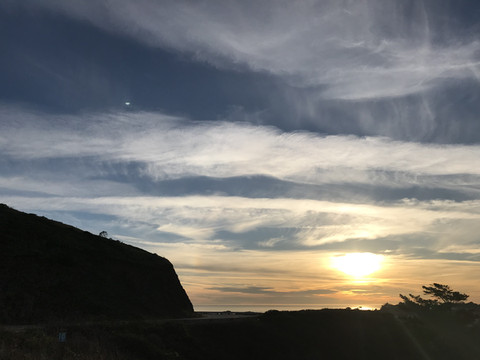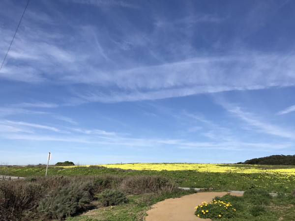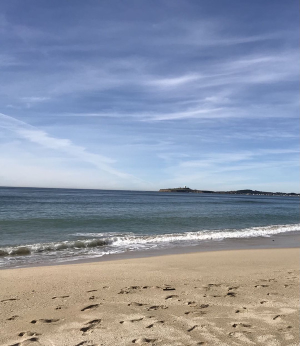 我们就是沿着这样的美丽公路,疾驰来到预计中的第一站,半月湾州立海滩(Half Moon Bay)。海滩旁边有个停车场,收费10美金,需要把钱装在信封中投入收费箱, 这种收费方式还真是新奇。进出口并没有收费提示和监督,付费全靠自觉。今天的温度应该能有27-30度,太阳热烈地晒在身上脸上,实在无法感觉到这就是当地的冬季。在这一带的海岸上,沙滩细致绵软,正是午饭时间,难得悠闲地躺在沙滩上,享用昨天面包店买的面包和唐人街选购的水果,欢声笑语,诺大的海滩只有我们几个人,海上有些风,但浪不高,天一如既往的蓝,白云变幻莫测,这样的地方真希望可以消耗一整个下午,但是,还有行程要走,虽然不舍,还是离开吧。