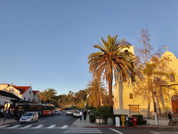 紧接着前往下一个地方,圣芭芭拉(Santa Barbara)。这是个西班牙风情的小镇,被评为全美最适合养老的地方。城中许多建筑保留西班牙殖民时代风格,高高的棕榈树是圣芭芭拉的标志。Santa Barbara是美国10大餐厅城市之一,自然美食遍地,但我们因为赶时间,只在一家披萨店解决了晚餐。不过圣巴巴拉的确好美好美,完全是我喜欢的小镇的模样,如能有幸来此住一段时间那该有多好,这个愿望先存下来吧,还有好长的路要赶呢。