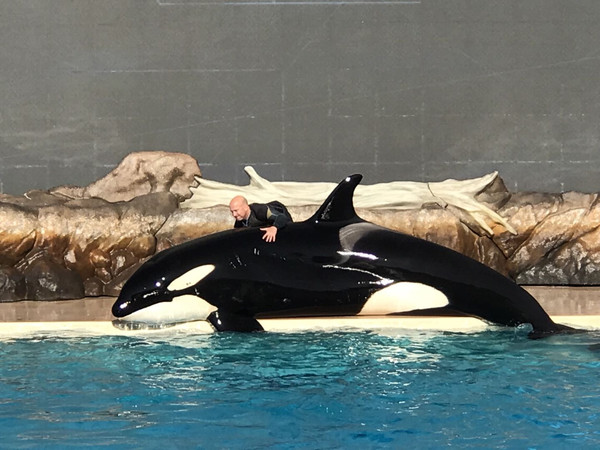 动物表演中最爱虎鲸超萌献艺,油亮光滑的皮肤闪闪发亮,时而跳跃时而潜游,有时又乖乖地匍匐在驯养师的身边,那么庞大的身躯竟也能让人心生爱意,丝毫没有恐惧,看到动物与人之间能如此友爱信任,心都融化了。