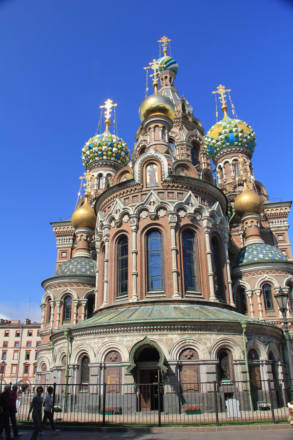 前面已经提过,此行看得最多的就是教堂,接下来又去参观了滴血大教堂, 这是亚历山大二世之子沙皇亚历山大三世为了纪念父皇在此遇刺修建这座教堂,不知滴血名称是否来源于此,这个教堂和莫斯科的圣瓦西里教堂长得很像,都是花花绿绿的洋葱头,所不同的是它的镶嵌工艺更为复杂.