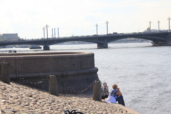 俄罗斯日出时间为早上3点半,所以虽然是早上六点,但天已经大亮,旅行团出发的时间是上午九点,于是我们背上相机在宾馆周围转悠.由于不懂俄文,我们不知道这个宾馆的名字,但地理位置却是极好,临河,临街.清晨的大街上除了卖早点的没有什么行人,公交车上乘客也寥寥无几,以致我们在公交站拍照,司机特意把车停下,以为我们要上车,大哥,不好意思,没有卢布,不然就真上车和你溜达一圈了.静寂的早上,没有限时限点的大巴车等着,没有了好心导游的催促,才能体会到这座城市的魅力.石块铺就的河岸,很多当地人静静的坐在那啥也不干,我也很想加入其中,抛却一切烦恼.