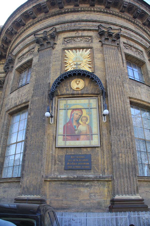 进得教堂,看见很多人在排队,队伍的劲头是一幅画像,每个排到的人都非常虔诚地划个十字,然后上前亲吻画像,出来后问得导游才知道这是圣母像,据说喀山的圣母像非常灵验,曾保佑俄罗斯人民渡过很多灾难.这大概和我们磕头拜菩萨是一个道理.