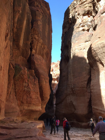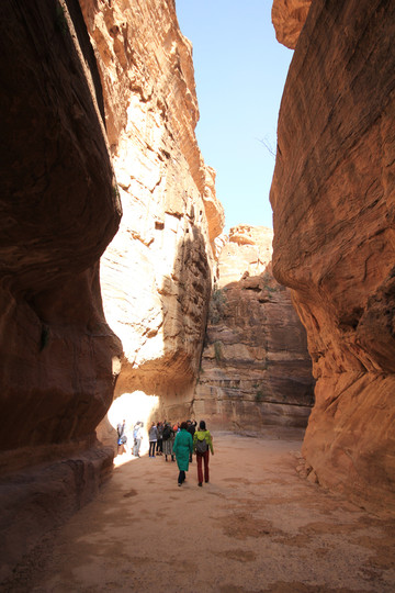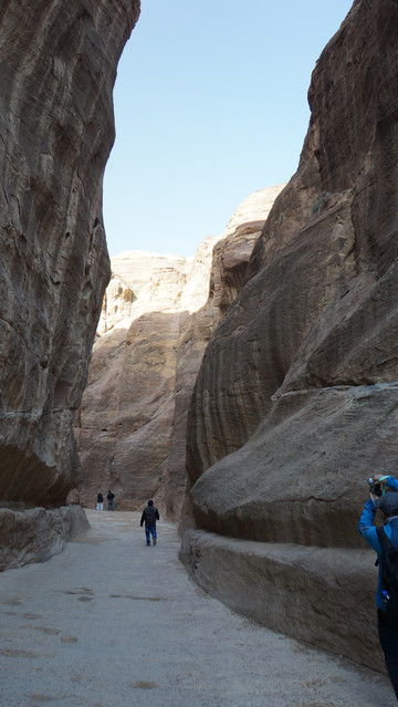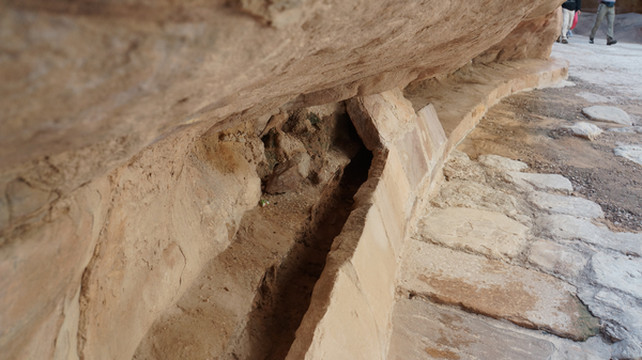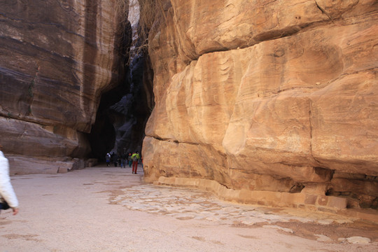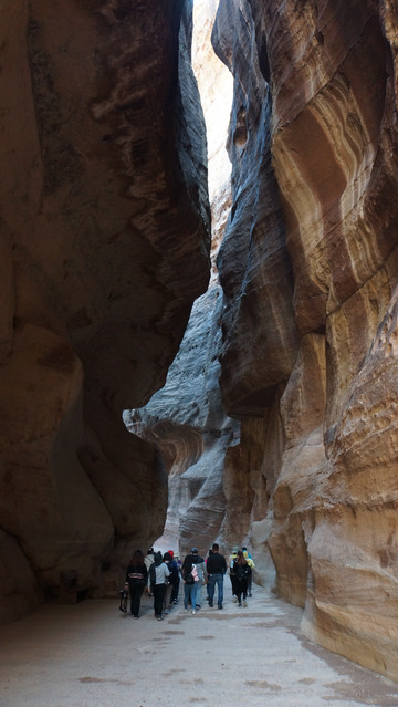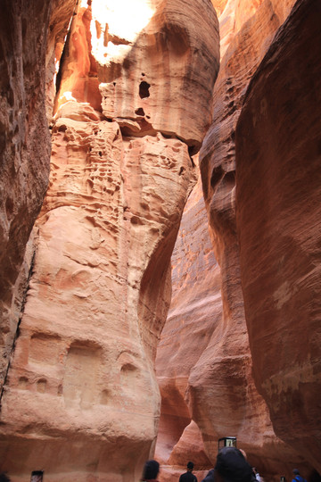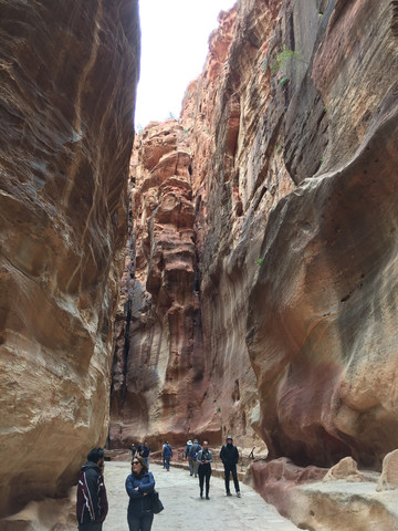 进入景区大门不久,开始走”蛇道”,所谓蛇道,其实是一个长1.5公里的峡谷,是佩特拉的唯一入口,因其狭窄所以易守难攻。两边岩石峭壁下开凿有长长的水渠将水从峡谷外引进城内,但据导游说后来罗马人攻克佩特拉,就是切断了这条水源,真所谓成也萧何败也萧何。