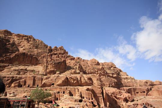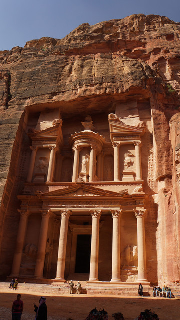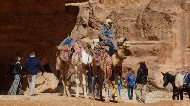 前面曾经说过,这次游玩原本的目的地是埃及,可不曾想的是游玩下来最令我念念不忘的却是今天的游玩地---佩特拉古城.古城位于约旦南部沙漠,海拔1000米的高山峡谷中。佩特拉到底是什么时候建造的已无从考证。根据其中陵墓半埃及半希腊的样式估计,专家估计应该始建于公元前6世纪之后.公元106年,纳巴特王国被罗马帝国军队攻陷,沦为罗马帝国的一个省。3世纪起,因红海贸易兴起代替陆上商路,佩特拉开始衰落,7世纪被阿拉伯军队征服时,已是一座废弃的空城。2007年7月8日被评选为世界新七大奇迹