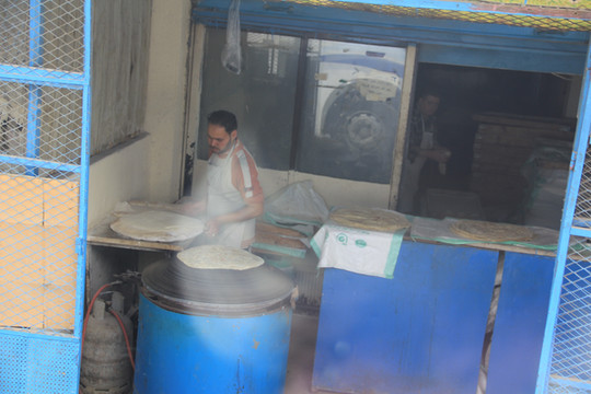 师傅在做饼,这个饼在我离开埃及时已经看到就怕了