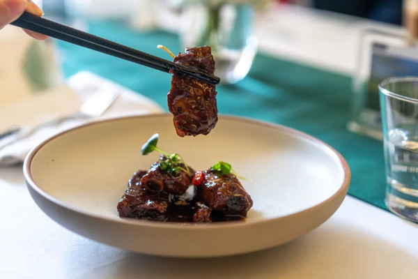 糖醋爱尔兰排骨吃第一口,熟悉的上海本帮味道就呼之欲出了。猪肋排部位的肉,瘦中有筋,酥软到牙齿不用费劲。蔡大厨的秘方是加入了话梅调味,经典的糖醋味中多了一分酸甜。