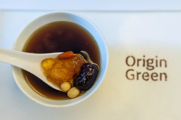 最后一碗中式甜品,鸡头米桃胶红枣糖水暖润熨帖。