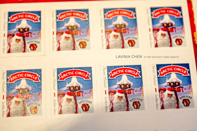 这是我见过最有意义的邮票,上边写着北极圈,还有圣诞老人和圣诞老人村。这么有意思的邮票,不得多写几张吗?