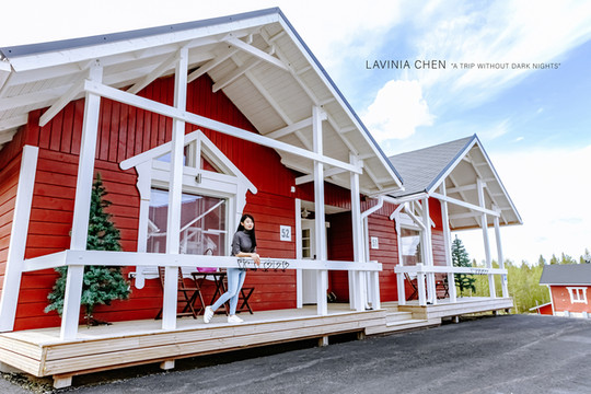 我们预订了圣诞老人村的小木屋,村里的接机车早已在外等候,再下车我们就来到了住处。