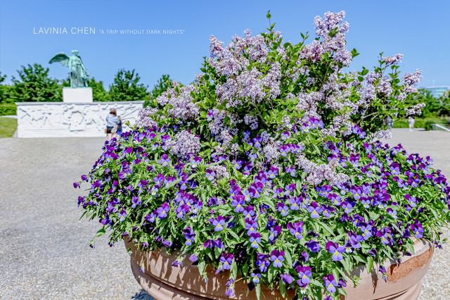 天气越来越晴,甚至天空万里无云。哥本哈根的花园里种植着很多大型盆栽,在骄阳下热烈的开着。