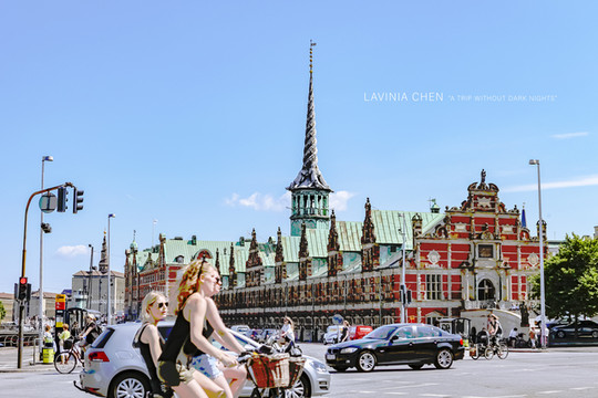 我拍旧股票交易中心的时候,正好路过了几个骑车的丹麦大美妞儿。考虑到肖像权,我的照片里很少出现其他人像,偶有几张背影、带墨镜或者面部不是很清晰的照片。,这张完美可以发出来,我可太喜欢了,丹麦的历史和美人儿。