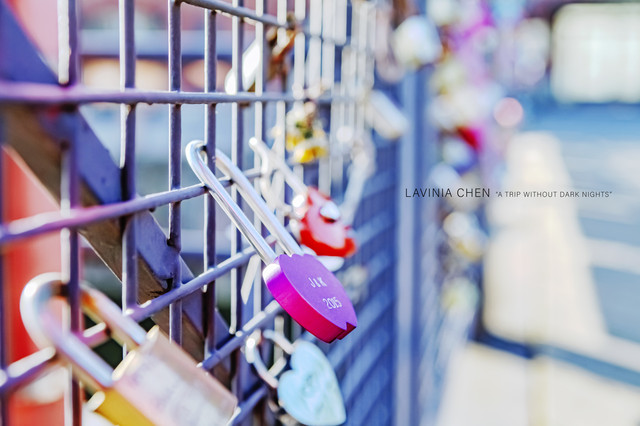 通往教堂的小桥上有很多锁,留着很多人的记忆和心事吧。这把2015年锁上,刻有两个人名字的粉色锁,应该是段爱情吧,不知现在是否依旧很好。