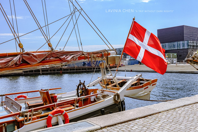 哥本哈根也是一个水系很发达的城市,随处可见船只和港湾。丹麦的国旗在艳阳下飘动的很耀眼。