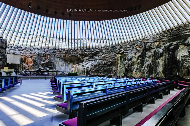 走着走着就到了静默教堂,它是芬兰创新木质结构建筑的一大创举。在这儿,从热闹到静寂,只有一步之遥。