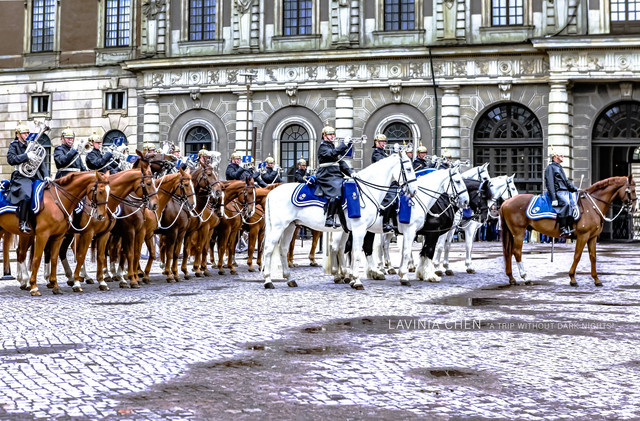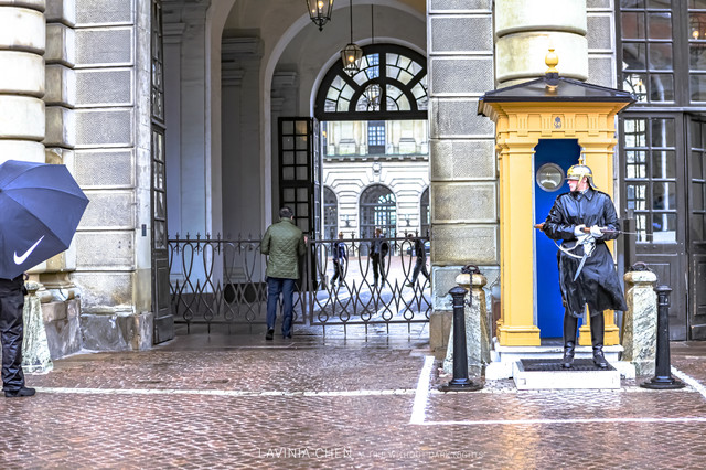 这里的换班仪式比瑞典皇宫的要简单很多,过程很简单,时间也很简短。