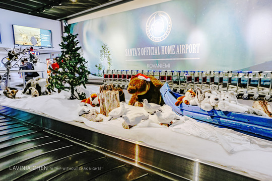 从伦敦到现在我们已经30多个小时没睡觉了,但是越来越激动,甚至在飞机上都毫无困意。落地罗瓦涅米,等待我们的是圣诞装饰的机场,这个机场的名字居然叫“Santa's official home airport”。