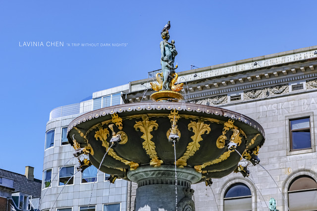 走着走着,就来到了长堤公园里另一个和小美人鱼铜像一样闻名于世的吉菲昂女神喷泉。喷泉由吉菲昂女神和四条牛及套犁等一组铜塑组成,由丹麦雕塑家昂拉斯•蓬高花费10年时间铸造而成,于1908年竣工揭幕,至今已超过百年。