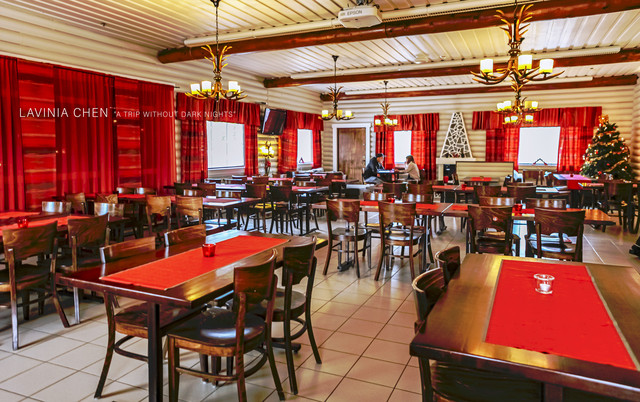 在房间里假装休息了一下,我们就来餐厅吃饭了。虽说不困,但是还是会饿的。圣诞老人村里的一切都是红色系的,很有圣诞的氛围。