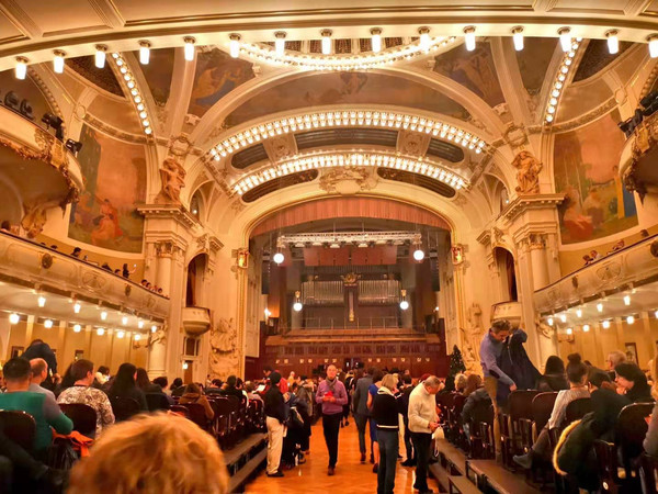 最后,还去欣赏了一场圣诞歌剧会,还没去过维也纳,人生第一场真正的歌剧表演却是在布拉格欣赏的。最让我印象深刻的是,这里的歌剧表演家在演唱时真的是不用麦克的;记得之前听人讲过,只要用麦克演唱的都不是正经歌剧,果真,在这里得到了验证。整个的大厅内饰古色古香,并且都是椭圆形和环形设计,真的是余音绕梁。(当然,我一句也听不懂,因为是捷克语,所以,后半小时有点痛苦)