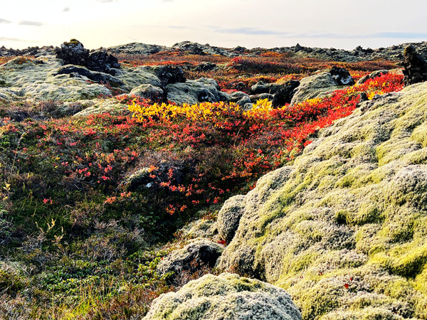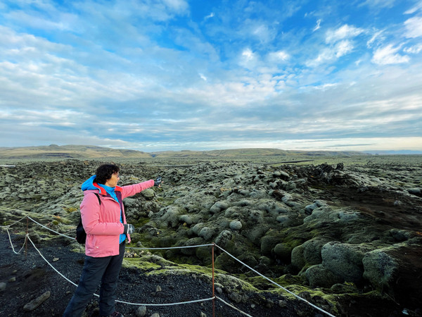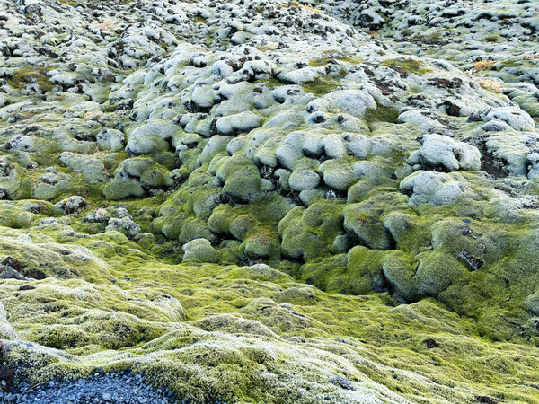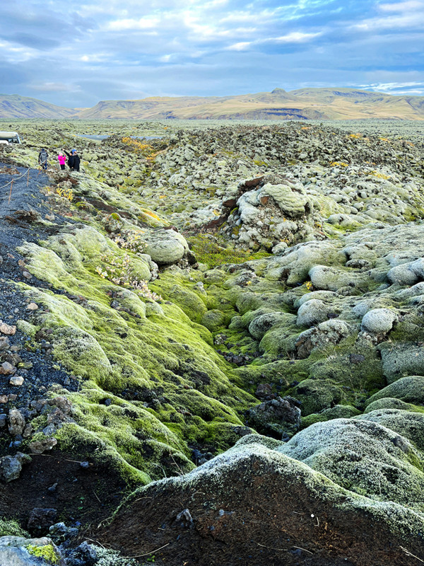 这是由于火山爆发喷出的岩浆凝固后形成的,有的堆积呈小山,有的在地面叠加,地面上全是烧焦的烁石,黑色的一片,让人联想起火山爆发时红色沸腾的火光和岩浆迸发出的巨大能量!这些苔藓附着在熔岩表面,通过叶子吸收养分和水分,经过上亿年逐渐形成光滑、连续的苔藓地毯覆盖的外观。这是 冰岛 独特的风景,苔藓不允许踩踏,否则难以恢复。