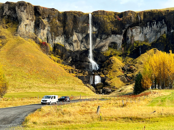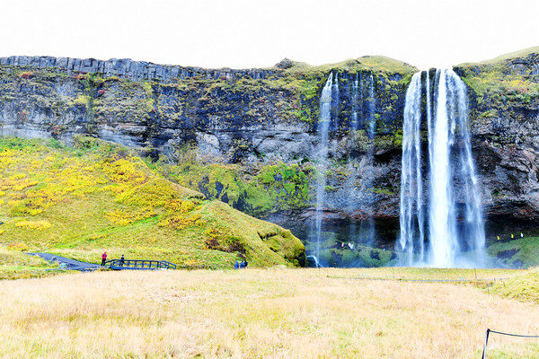 冰岛 很多瀑布,塞里雅兰瀑布是其中最著名瀑布之一,就在 一号公路 旁。远看瀑布很不起眼,走近才发现它的特别。