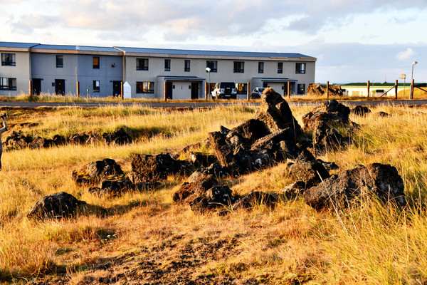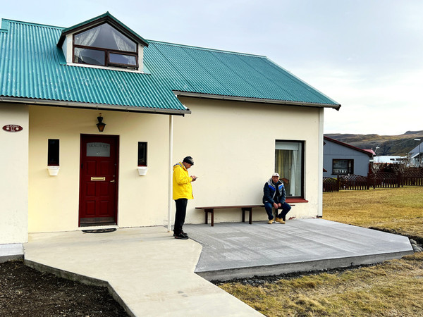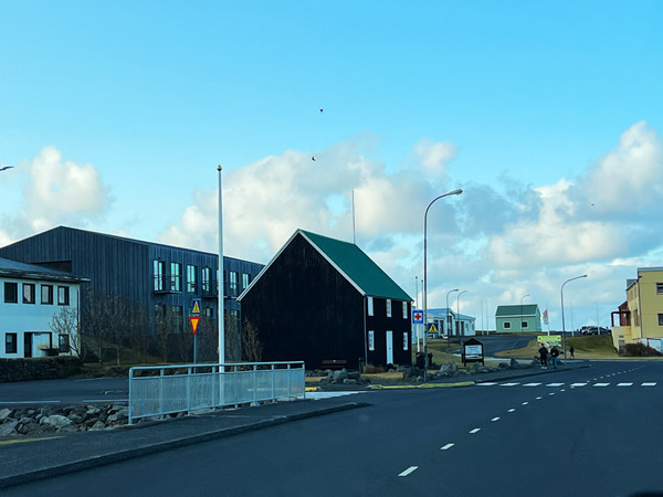我们在靠近蓝湖温泉的 格林达维克 小镇上租了两套公寓Grund Guesthouse,就在路德教会附近。外表简陋,周围荒凉,地面是黑色火山石,但入内全松木建造,很温馨有家的感觉( 格林达维克 小镇是此次火山喷发的重灾区,已有4000多居民撤离,不知道现在情况怎样?希望影响不要太大,希望小镇的居民早日返回家园)。