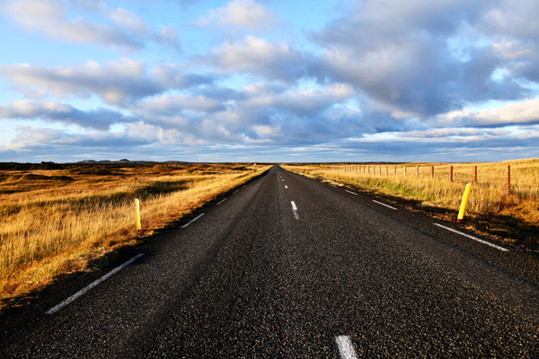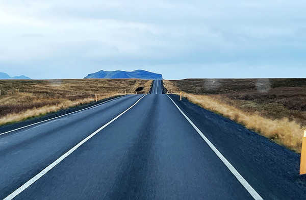 在屋后草甸上自拍出自己大长腿的影子,在公路上拍到秋日 冰岛一号公路 无穷远的延伸。