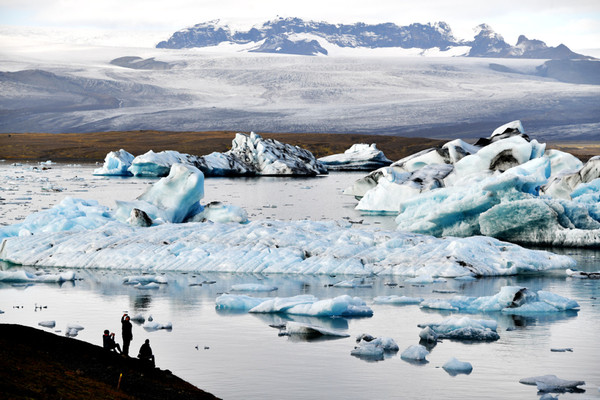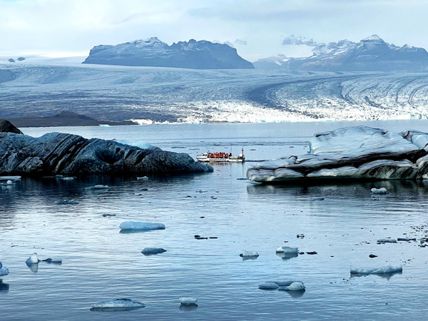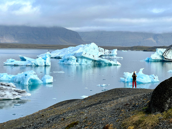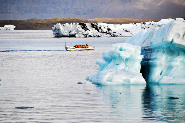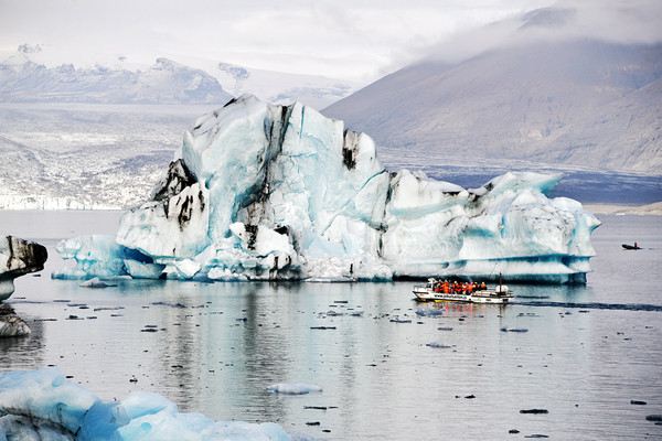 一艘艘游船载着游客在这些巨型浮冰穿梭而行,欣赏这些形态各异的浮冰。据说这是最受欢迎的旅行方式。我们到达时天空阴郁,湖水并没有期望的蓝湛。我们时间很短,只能在岸边观赏拍照,半小时后离开。留下一点小小的遗憾。