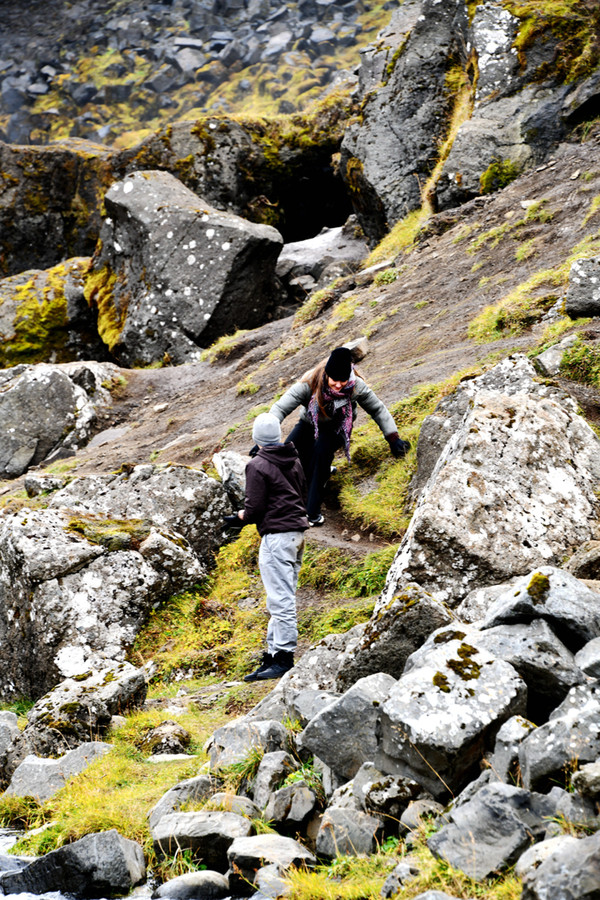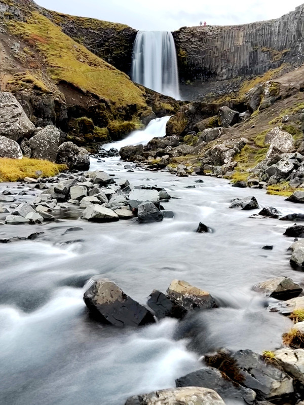 冰岛 瀑布就是多,但也许因为今天天气不好,也许因为前几日见过 冰岛 最美的几条瀑布,这条瀑布在我们心中并没有产生更强的反应。走进看,这条瀑布虽然没有雅兰瀑布和彩虹瀑布那么有名气,但水量非常大,流水潺潺。勇敢的人们攀爬到瀑布顶端,站在高处眺望。相信天气好的话,拿上脚架,一定可以拍出大片。