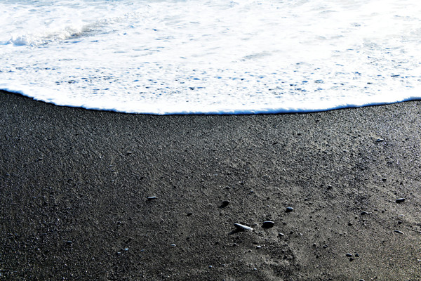 山还是那座山,海还是那片海,但阳光下带给我完全不同的体验。蓝天下的黑沙滩它黑的天然、黑的通透,海水丝毫未受影响依然清澈。每一次海浪冲上退下,沙滩上一个个黝黑发亮的小黑石躺在沙上闪闪发亮,感受黑砾石滩的奇妙和汹涌的海浪。我捡起一块又放下,因为恪守着“什么都不能带走”的承诺。