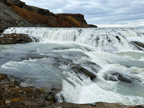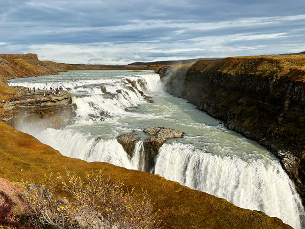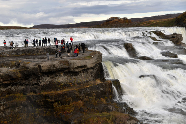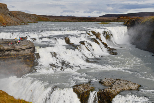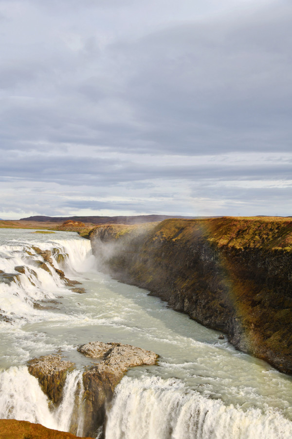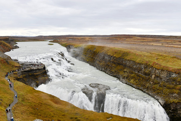 下午3点多钟来到黄金瀑布,一个 冰岛 人最喜欢的瀑布,也是 冰岛 最受欢迎的旅游胜地。人未到,但瀑布发出的巨大轰鸣声就已震耳欲聋。