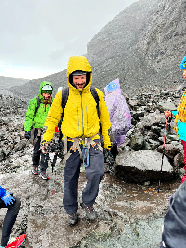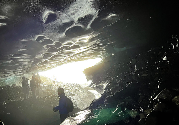 蓝冰洞(Ice Cave),是只有冬天才有的项目,必须跟着向导。随着冰川的移动,随着气候的变化,每年的蓝冰洞都不一样,今年在这里也许明年就不存在了。(回来后整理照片,发现确实是看见冰洞,但不是蓝冰洞,因为天气原因,阴雨无阳光,冰洞的蓝色未显示出来。)