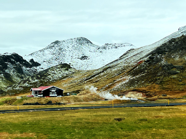 前往 格林达维克 小镇途中,见到公路不远处热气翻腾,是地热发电厂还是蓝湖温泉?大家猜测着。应该是发电厂(也许这就是距离 格林达维克 小镇6公里,向全 冰岛 供电的斯瓦特森吉地热发电厂,在此次火山喷发中受到重点保护的发电厂)。