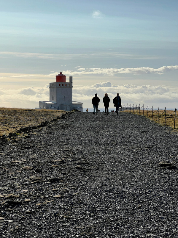 网查,这里也是一个景点,称为迪霍拉里(Dyrhólaey),意为“门山之岛”,是火山运动的产物,是一座120米的狭长半岛,也是一座拱门形状的海蚀岬角。没做功课,未能拍出完整的半岛。那个被称为象鼻山或大裤衩的,就是半岛的一部分。我们见到山顶上那座 灯塔 最早建于1910年,百年来因为天气恶劣无人值守,直到2015年有人将这座城堡式 灯塔 改建成了酒店。