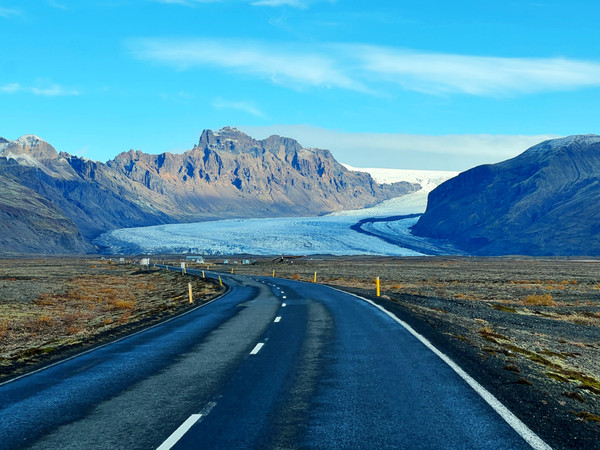 继续前行,天空慢慢阴郁下来,道路远端出现一个更大的似冰川又似云海的景象,靠近后用相机长焦拉近,是冰川!但我们没有再停车。