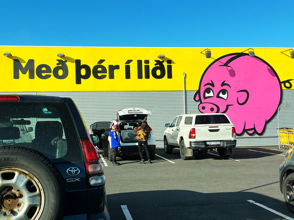 途中我们抓紧时间去超市购买在 冰岛 最后的晚餐食物。时间太紧了。