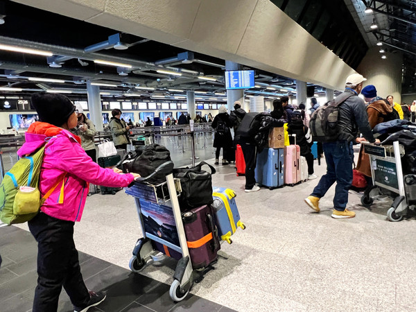 告别了世界最北最清净的城市 朗伊尔城 ,10月1日在 奥斯陆 转乘 北欧 航空公司飞机SK4787(14:45-15:35)飞往 冰岛 首都 雷克雅未克 。经过两个小时飞行,于 冰岛 时间15:35到达。 冰岛 时间比 朗伊尔城 时间慢一个小时,无意间为我们争取了多一个小时的活动时间。非常庆幸上一个航班延误没有耽误我们的行程。