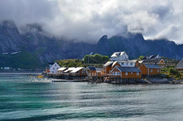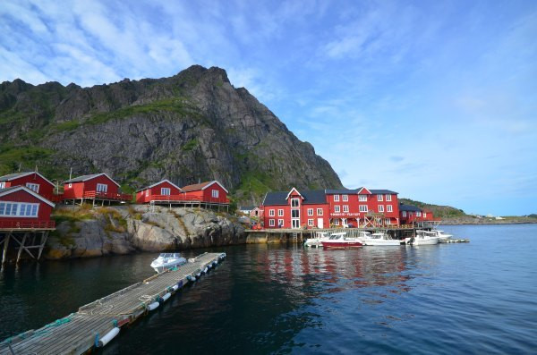 红色的铁皮油漆房是群岛的特色,传统上是渔人的住所。