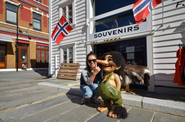 如果说卑尔根是这个阴郁沉闷的国家里最有活力的城市一定没有人反对。没错,卑尔根举世闻名,是挪威乃至整个欧洲游客心目中最热门的目的地之一,这里是挪威标志性峡湾的门户,是乘坐旅游大巴的游客接踵而来竞相拍照留念的地方——是的,严格上来说上我说的是卑尔根的布吕根和沃根港。布吕根那标志性的小木屋,也就是在港口就能看到的那排成一排的五颜六色的三角形屋顶建筑,被列入联合国文化遗产。但是我始终没能感受到它的魅力,就我所见,现在这里事实上是各种旅游纪念品商店和昂贵的餐馆。即便如此,刚到此地的我们也是兴奋不已(人潮涌动的沃根港鱼市以及我们咕咕作响的肚子)。同志们,体会下我们的心情,这里毕竟是众多向往挪威的旅行者心中梦寐以求的地方,现在我们终于站在明信片里了!!!!