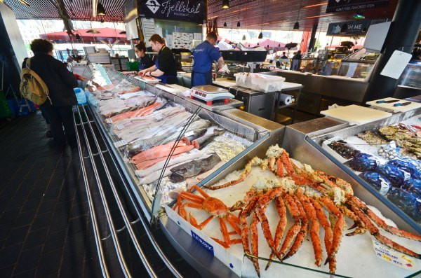 在鱼市我问了下老板,这蟹腿怎么卖啊。鱼市小妹看我一副没钱的亚洲游客样,还是很委婉的告诉我一条蟹腿差不多一百多挪威克朗(因为是按重量计算的)。一百多块吃一条蟹腿?昂?!