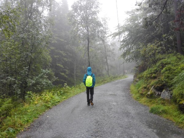真是shi一样的天气,我原本期待山顶观景台壮观的卑尔根港口景色,结果只看到伸手不见五指的白茫茫一片,整座山显然被笼罩其中了。今天Floyen山显然不是官方旅游局网站宣传的那么美,天上下着阵雨,地上湿滑无比,结果我一个不小心踩滑一块石头然后整个人摔进泥水坑!我去……躺在水坑里整个人都有点神志不清了,幸好穿着软壳外套,否则要冻死回旅馆了。