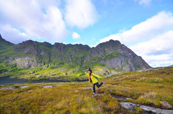 我们就快被罗弗敦的风景美哭。几乎每走几步都是原本只会在明信片中看到的美景,一下次心情愉悦不少。如图小桃兴致勃勃。